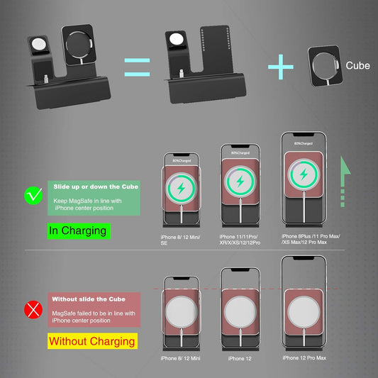 Aluminum Charging Stand for Apple Device 3 in 1 Charger Stand Holder Compatible with Magsafe Charger Iwatch Charger Airpods Pro/2/1 and Iphone Stand Holder(Charger & Cable Required)-Black