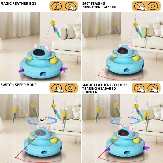 4 in 1 Interactive Cat Toys with USB Rechargeable,Smart Cat Feather Wand for Indoor Cats with Red Beam,Smart Interactive Electronic Exercise Kitten Toys,Exercise Cat Wand,Indoor Exercise Cat Kicker